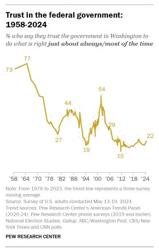 This moment is landing on top of a deeper and longer-running problem. Public trust in government is near historic lows.