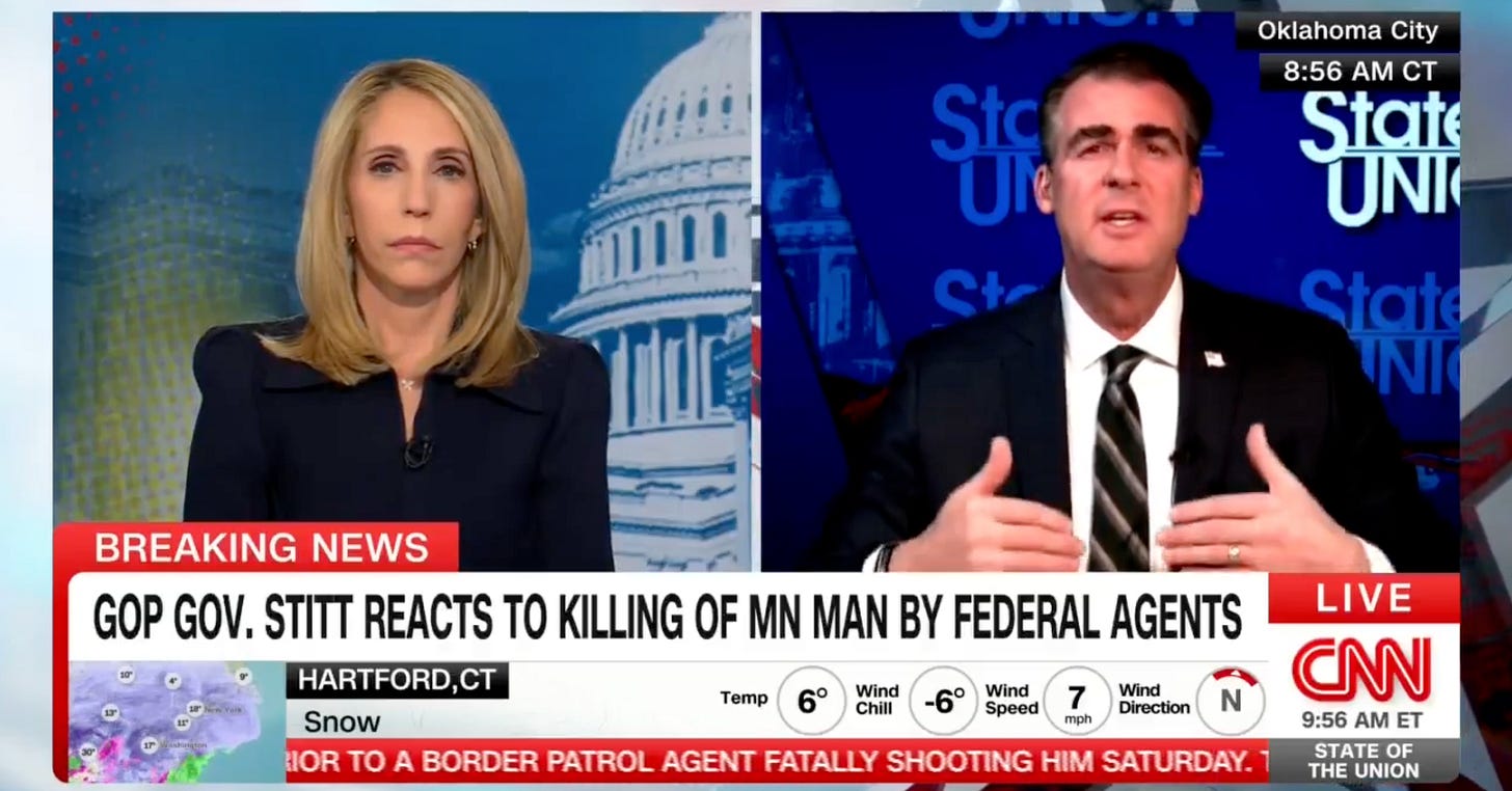 Oklahoma Gov. Kevin Stitt sharply questioned the Trump administration’s federal immigration tactics after the fatal Minneapolis shooting of a U.S. citizen by a Border Patrol agent, a rare GOP critique of the president’s enforcement surge. Stitt called the incident a “real tragedy” and said the public is uneasy about what they’re seeing unfold in Minneso…