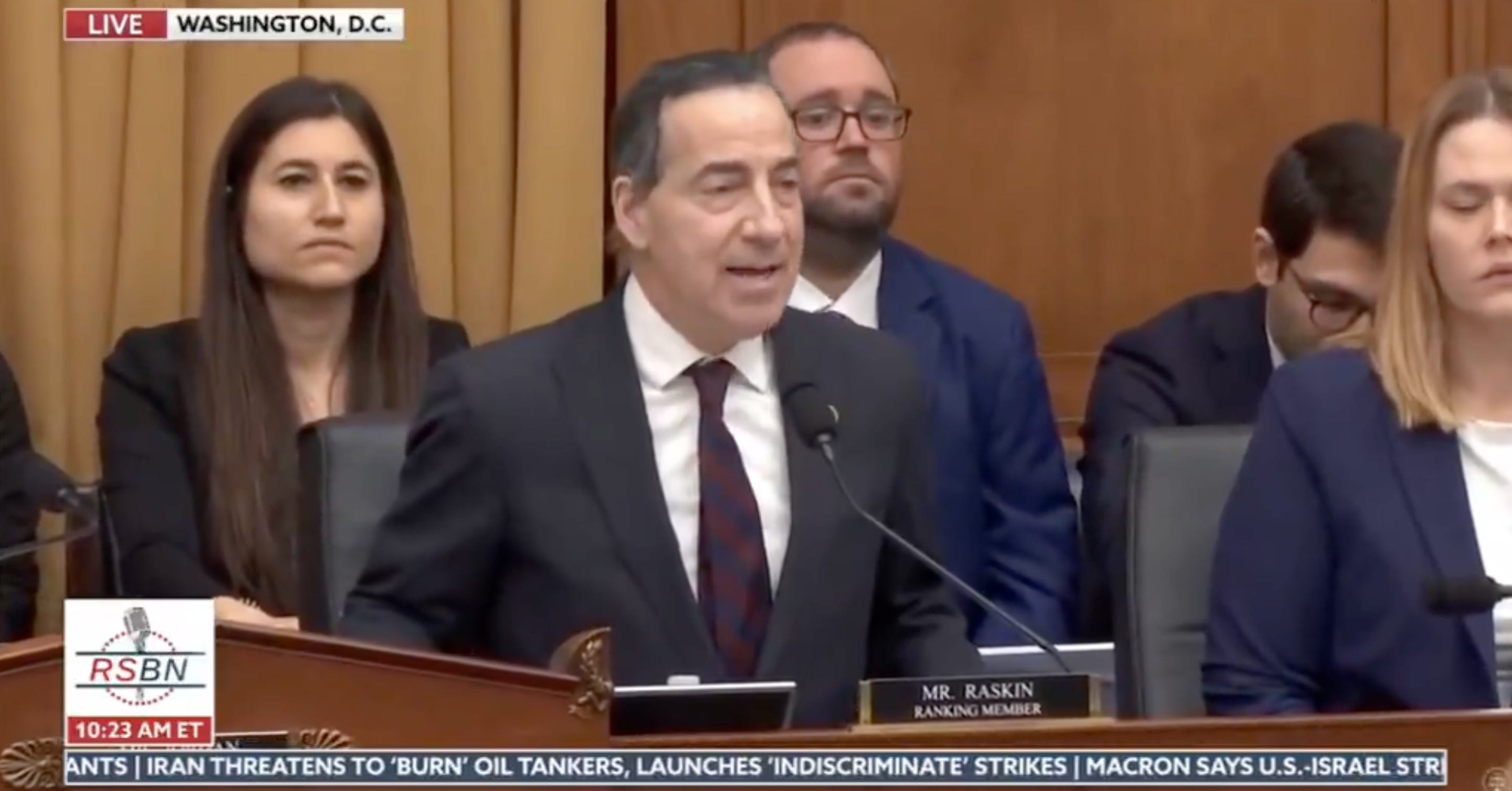 Rep. Jamie Raskin sharply confronted Homeland Security Secretary Kristi Noem during a House oversight hearing Wednesday, accusing her of directing taxpayer funds toward media campaigns and government aircraft purchases while leading the Department of Homeland Security.