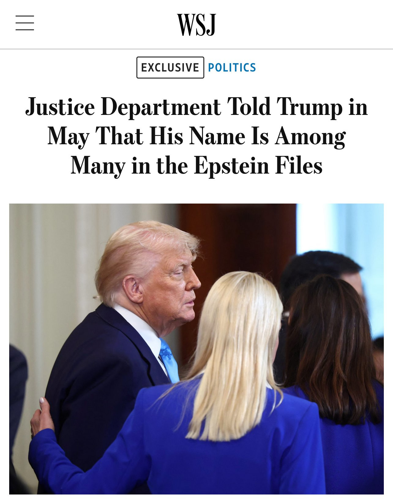 While the image may not be authentic WSJ, the underlying story is very real: Trump’s ties to Jeffrey Epstein are well-documented, and recent moves by his inner circle suggest they’re preparing for fallout.